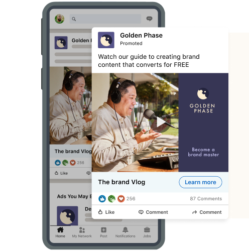Multimedia ads that appear in the LinkedIn feeds of specific members on desktops, tablets, and mobile devices.