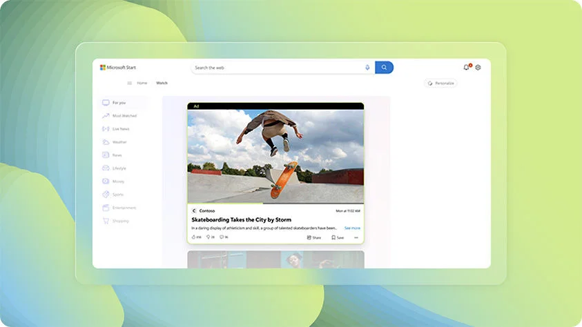 Connect with global audiences through native and display ads in brand-safe environments such as Microsoft Start, MSN, Microsoft Edge, Outlook, and Microsoft Casual Games.